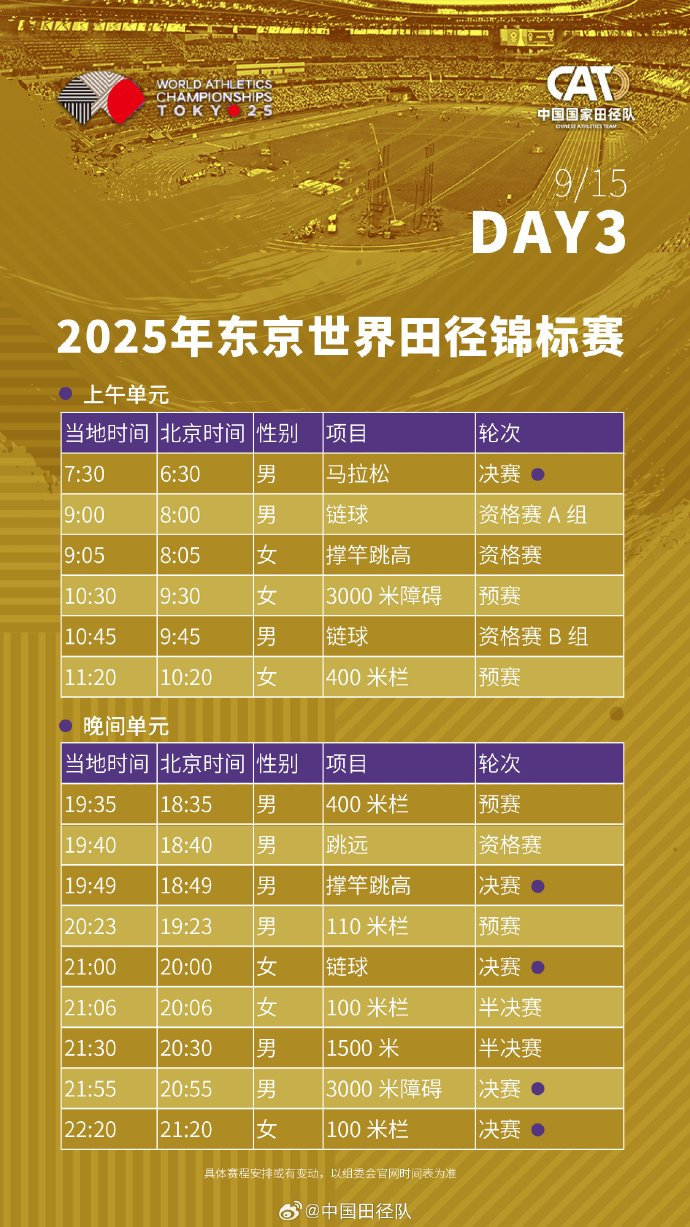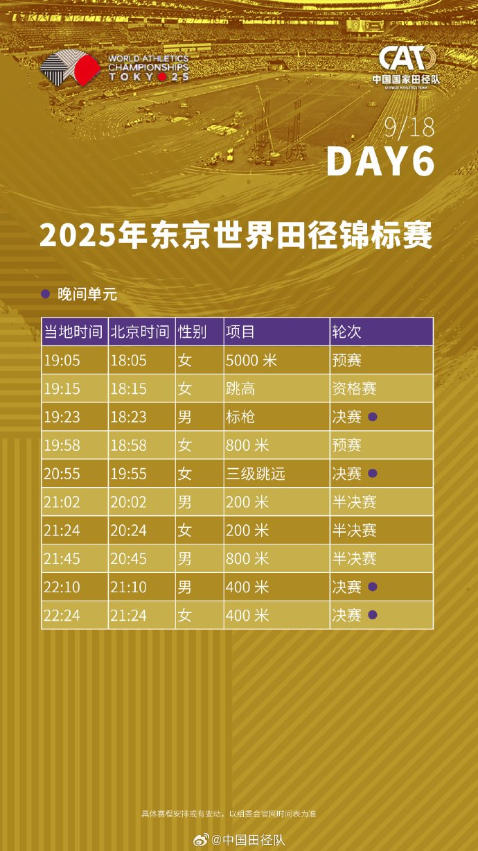 #2025东京田径世锦赛赛程# 中国田径队将派出73名运动员(男运动员41人、女运动员32人),参与田径世锦赛33个小项的比拼。